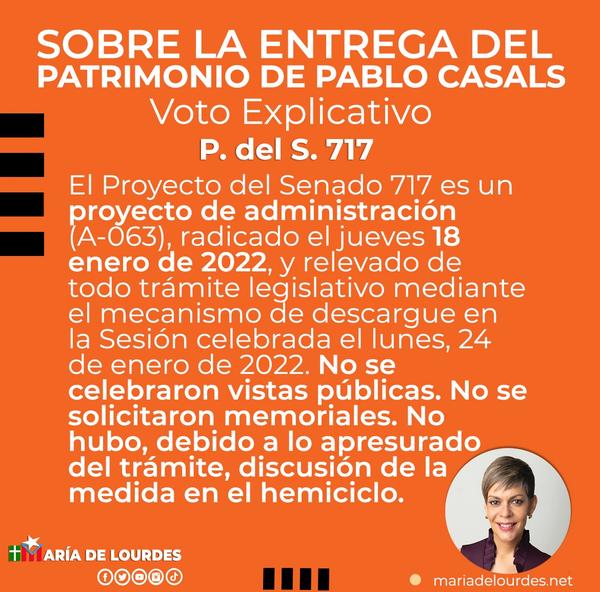 razones – y sin dejar de reconocer la necesidad de evaluar cuál debe ser el destino del patrimonio de Pablo Casals- me he opuesto a la aprobación de esta medida.