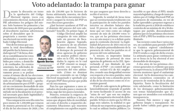 Durante la discusión en torno a la aprobación del Código Electoral vigente, voces con conocimiento electoral, incluyendo el PIP, advertimos los peligros del mismo. Solo bastaron las primarias y las elecciones de 2020