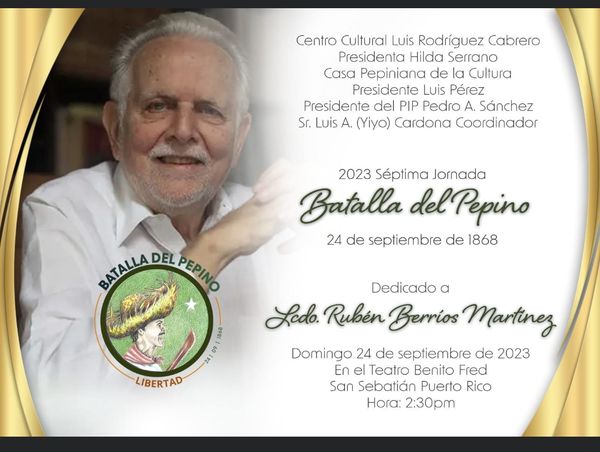 Séptima Jornada Batalla del Pepino Dedicada al Lcdo. Rubén Berríos Martínez Día: domingo, 24 de septiembre de 2023 Lugar: Teatro Benito Fred en San Sebastián Hora: 2:30 p.m.