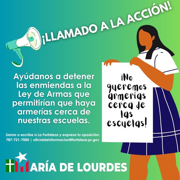 _____, del pueblo de _____ y me estoy comunicando para expresar mi preocupación en cuanto al Proyecto Sustitutivo de la Cámara a los proyectos 575 y 362 de la Cámara que busca enmendar la Ley de Armas de Puerto Rico de 2020. Este proyecto eliminaría cualquier requisito de distancia entre una armería y un plantel escolar.