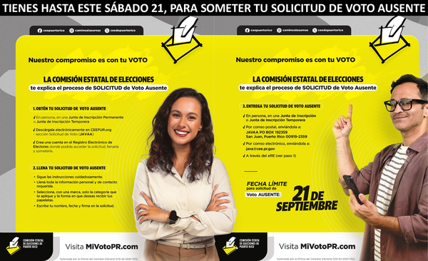 TIENES HASTA ESTE SÁBADO 21, PARA SOMETER TU SOLICITUD DE VOTO AUSENTE