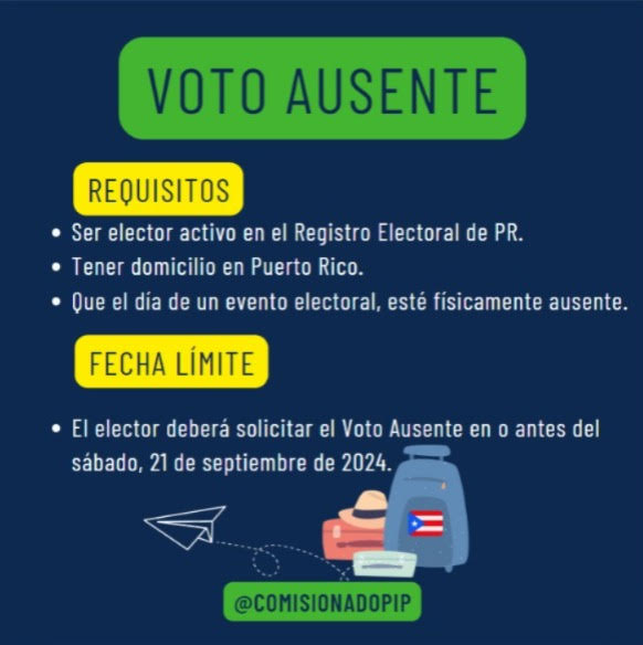 La solicitud está disponible en el portal de la CEE, en las JIPs y en nuestro portal: www.comisionadoelectoralpip.com.