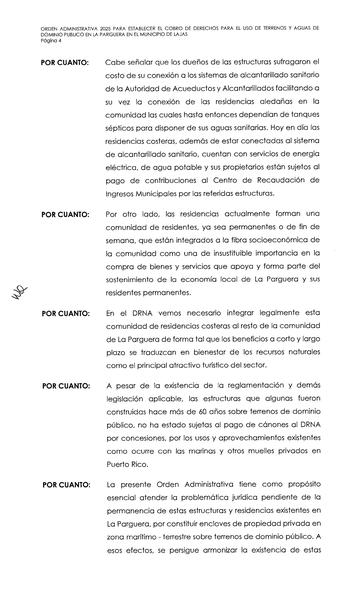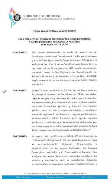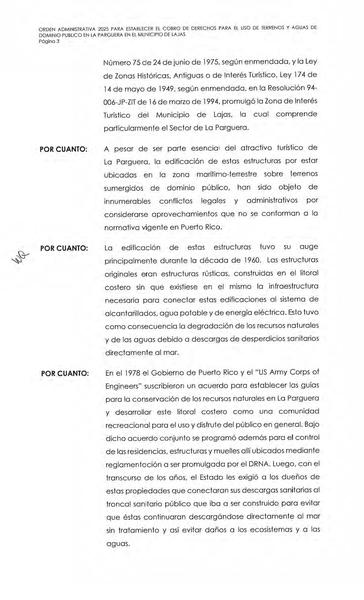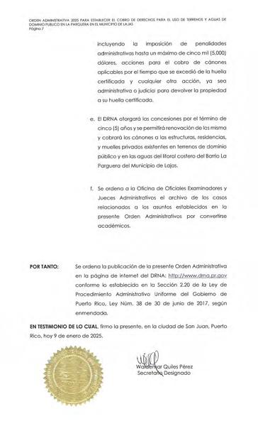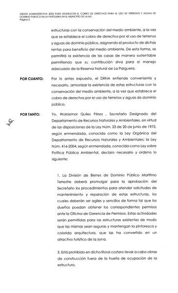 Independentista Puertorriqueño, Adrián González y María de Lourdes Santiago, denunciaron la emisión de una Orden Administrativa legalizando mediante el pago de derechos las estructuras localizadas en los bienes de dominio público en la Zona Marítimo Terrestre de La Parguera, aprobada en su primer día en funciones por el Secretario designado del Departamento de Recursos Naturales, Waldemar Quiles.