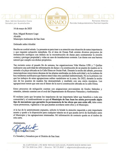 llegar al alcalde de San Juan este reclamo legítimo para que actúe en beneficio del ambiente, la propiedad y el buen uso de los fondos públicos”, sentenció González Costa.